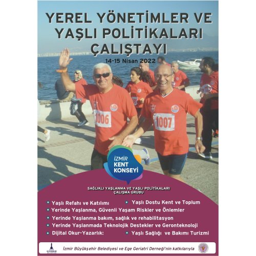 Yaşlılık odaklı çalışmalara ağırlık veren İzmir Büyükşehir Belediyesi, “Yerel Yönetimler ve Yaşlı Politikaları” çalıştayı düzenliyor. Ege Geriatri Derneği’nin işbirliğiyle düzenlenecek çalıştay 14-15 Nisan tarihleri arasında İzmir Kent Konseyi Merkez Ofisi’nde yapılacak. Çalıştayda yerinde yaşlanma, güvenli yaşam riskler ve önlemler, yaşlı refahı ve kalımı, makro çevre-mikro çevre, yerinde yaşlanmada teknolojik destekler, geronteknoloji ve dijital okur-yazarlık başta olmak üzere pek çok konu üzerine konuşulacak.
