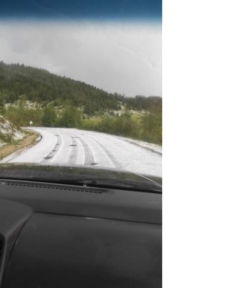 Dolu yağışı ile birlikte her taraf beyaz örtüyle kaplanarak adeta yaz ayını kışa çevirdi. Sürücüler, doludan dolayı beyaza bürünen yollarda ilerlemekte güçlük çekti.