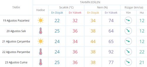 Ancak il genelinde nem oranının yüzde 64-92 aralığında olması nedeniyle hissedilen sıcaklık bir hayli yüksek olacak.