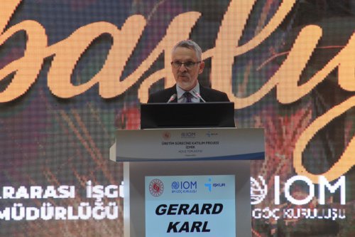 Uluslararası Göç Örgütü Türkiye Misyon Şefi Gerard Karl Waite ise Türkiye’nin çok yüksek sayıda göçmene ev sahipliği yaptığını belirterek, “İş piyasasına göçmenlerin dahil edilmesi çok önemli bir rol oynuyor. İzmir, Türkiye’deki en canlı ekonomik merkeze sahip il. Metal, kimya, makine ve tekstil olmak üzere birçok endüstri sektörleri var. Türkiye ekonomisin itici gücü olarak İzmir iş gücüne katılımın genişlemesine katkıda bulunmaktadır. Fakat belli başlı sektörlerde iş gücü talebini karşılamak çok zor. Türk vatandaşlarının ve yabancıların doğru bir şekilde iş gücüne dahil edilmesi gerekiyor. Hem göçmen hem Türk çalışanlar olarak geçim kaynakları kalkınacak ülke ekonomisine büyük katkıda bulunacak ve sosyal uyumu güçlendirecektir” diye konuştu.