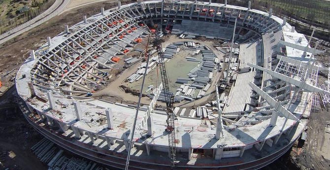 "Çelik çatı toplamda 38 bin 690 metrekare alana sahip ve 28 ana kirişten oluşmaktadır. Stadyumda çelik çatı kaplaması olarak uçlarda polikarbonat diğer kısımlarda çift katlı kenet sistem uygulaması yapılmıştır."