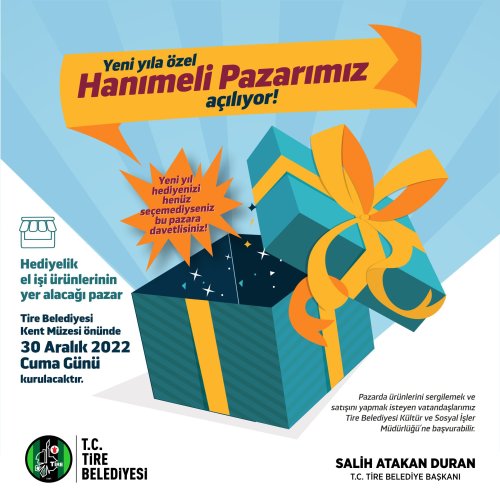 MEDYA EGE - Yeni yıl coşkusunu ilçeye yaymak için çalışmalar başlatan Tire Belediyesi, hediyelik el işi ürünlerin yer alacağı Hanımeli Pazarını açıyor.