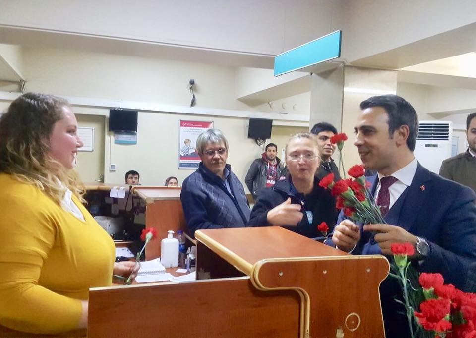 Ak Parti Konak İlçe Başkanı Temel Yıldırım, yılbaşı gecesi ziyaret geleneğini dördüncü yılında da devam ettirdi. Hastanelerin acil servislerini, polis merkezlerini ziyaret eden Yıldırım, sağlık ve emniyet çalışanlarına kırmızı gül ve karanfil verdi. Hastalara geçmiş olsun dileklerini ileten Yıldırım, çocuklara oyuncak dağıttı. Yeni yıla şehit ailesiyle birlikte giren Başkan Yıldırım, 2018’in ilk bebeğine de altın taktı.