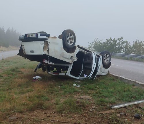 Manisa'da yağmur sonrası kayganlaşan yolda sürücüsünün direksiyon hakimiyetini kaybettiği kamyonet yoldan çıkarak ters döndü. Kazada iki kişi yaralandı.