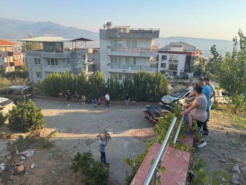 Yoldan çıkan otomobil apartman bahçesine uçtu!