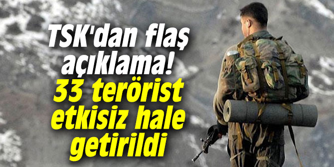 TSK'dan flaş açıklama! 33 terörist etkisiz hale getirildi