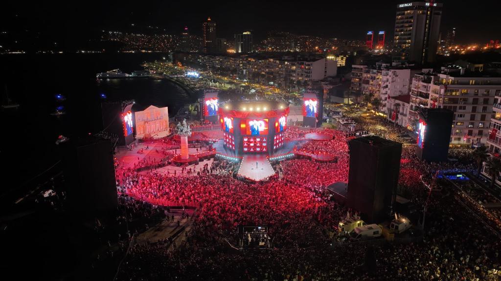 Gündoğdu Meydanı'nda sahne alan Megastar Tarkan, yüzbinlerce İzmirliyi coşturdu.
