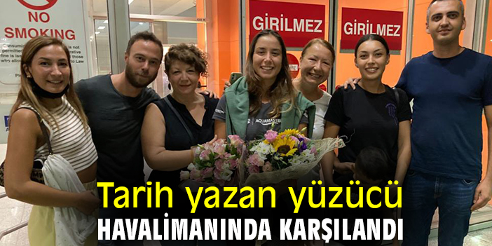 Tarih yazan yüzücü havalimanında karşılandı