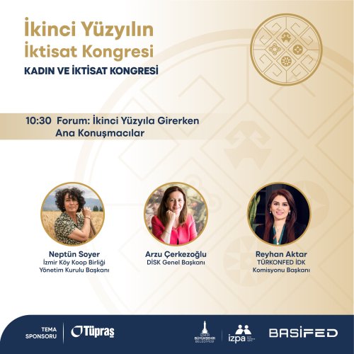 Forum kapsamında İzmir Köy-Koop Birliği Yönetim Kurulu Başkanı Neptün Soyer, Devrimci İşçi Sendikaları Konfederasyonu (DİSK) Genel Başkanı Arzu Çerkezoğlu, TÜRKONFED Yönetim Kurulu Başkan Yardımcısı ve İş Dünyasında Kadın (İDK) Komisyonu Başkanı Reyhan Aktar birer konuşma yapacak.