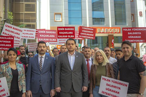 Zafer Partisi İzmir İl Başkanı Av. Ege Tunca, "Burada bulunmamızın amacı Sayın Genel Başkanımız Ümit Özdağ’ın talimatı ile İzmir Barosu’nun sığınmacılar ve kaçakçılar hakkında yapmış olduğu hukuka aykırı yaptırımların protesto edilmesidir." dedi.