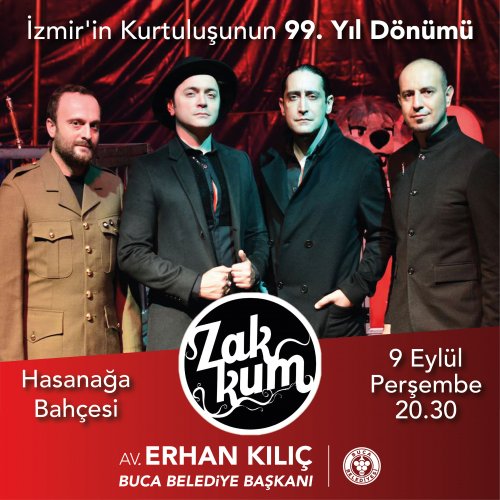 İzmir'in kurtuluşunun 99. yıl dönümü kutlamaları kapsamında ünlü müzik grubu Zakkum, Buca 'da hayranlarıyla buluşacak.