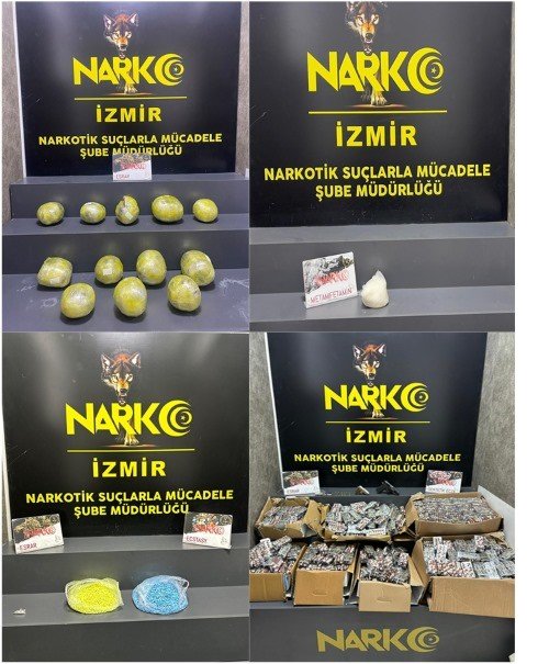 İzmir merkezde 7 adres ve şehirlerarası otobüs terminalinde 2 otobüste yapılan aramada çok miktarda uyuşturucu ele geçirilirken, gözaltına alınan 11 kişiden 8'i tutuklandı.