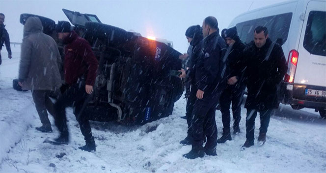 Özel harekat polislerinin içerisinde bulunduğu zırhlı araç buzlu yolda kayarak devrildi. Kazada 3 polis hafif şekilde yaralandı.