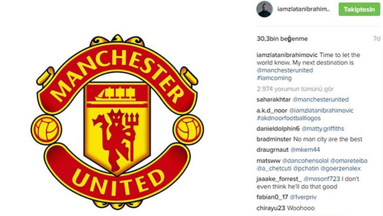Ibrahimovic, sosyal medya hesabında yaptığı paylaşımda ''Dünyanın bilme zamanı geldi, sıradaki durağım Manchester United'' ifadelerini kullandı.
