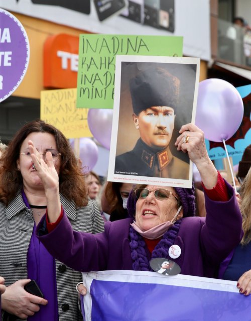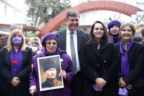 CHP Karşıyaka Kadın Kolları Başkanı Alev İldeniz ise törendeki konuşmasında şunları kaydetti: “Tarih boyunca kadın cesaretiyle, gücüyle, farkındalığıyla, mücadelesiyle hep ön saflarda yer aldı. Bugün kadınların sahip olduğu her hakta yine biz kadınların emeği ve gücü var. Ne acı ki günümüz Türkiye'sinde iktidarın izlediği kadını hiçe sayan politikalar sebebiyle artık istisnasız her gün yurdumuzun dört bir yanından gelen kadın cinayeti, kadına şiddet, taciz gibi kahredici haberlerle nefessiz kalıyoruz. Zaten etkin uygulanmaktan imtina edilen ve bir gecede keyfi bir karar ile çekilen ‘İstanbul Sözleşmesi Yaşatır’ demeye devam edeceğiz. Ta ki bu anlamsız adım geriye çekilene kadar...”