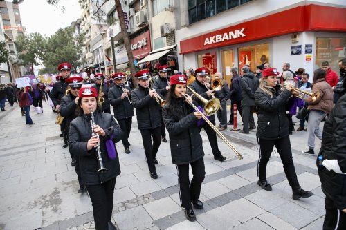 Törende, Ulu Önder Gazi Mustafa Kemal Atatürk’ün Annesi Zübeyde Hanım, bir kez daha sonsuz saygı ve minnetle anıldı. Anıt mezara çiçekler bırakılırken, katılımcılara mor balonlar dağıtıldı. Ziyaretin ardından, Çarşı içerisinden Karşıyaka İskele’ye yürüyüş düzenlendi. Dövizler ve sloganlarla toplumsal cinsiyet eşitliği çağrısı yapıldı, “Şiddete hayır” mesajları verildi.