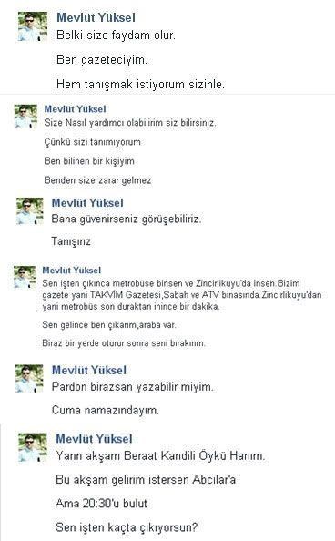 Gezi Parkı’nda ağaçlarla ve Alman ZDF kanalı önünde yaptığı röportajlarla bilinen Takvim Gazetesi Haber Müdürü ve A Haber muhabiri Mevlüt Yüksel, Facebook’ta Vehaber editörü olduğundan habersiz olduğu genç kadına buluşma teklif etti. Kadından telefonunu da alan Yüksel, sitenin iddiasına göre genç kadının ekonomik durumunu sorarak “Ben sana burs veririm canım benim, ben sana yardımcı olurum” dedi.