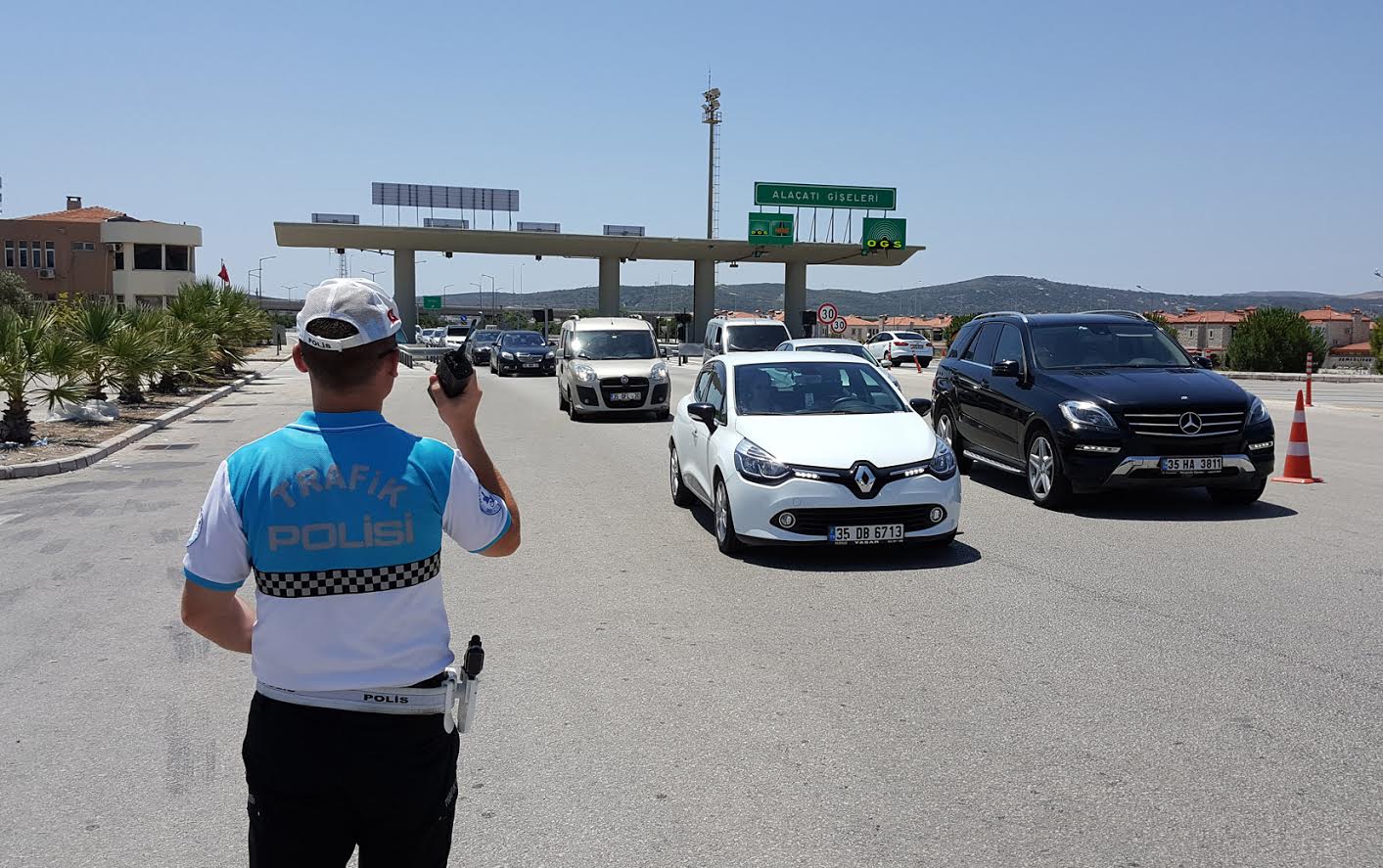 Denizhan Güzel (ÇEŞME)- Türkiye’nin e n gözde tatil beldelerinden birisi olan İzmir’in Çeşme ilçesi sabah saatlerinden itibaren tatilcilerin akınına uğradı.Alaçatı ve Çeşme otoban gişelerinde yoğunluk yaşanırken,emniyet güçlerinin de güvenlikuygulamaları devam ediyor.