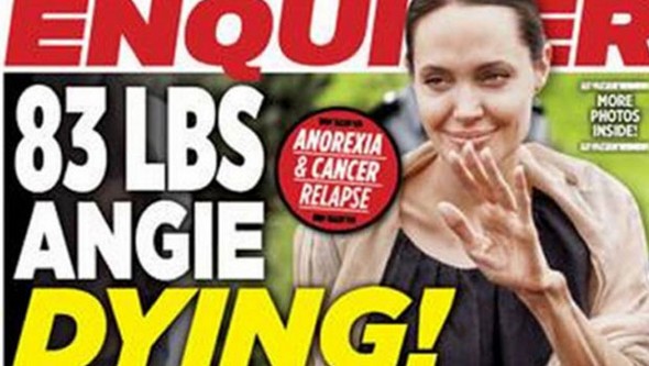 2016 yılı Nisan ayı içerisinde National Enquirer dergisinin ortaya attığı iddiada Jolie'nin kanser ve anoreksiya hastalıkları yüzünden çok fazla kilo verdi.
