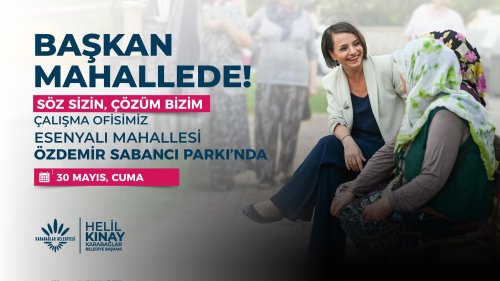 Karabağlar Belediye Başkanı Helil Kınay, sorunları yerinde tespit etmek amacıyla ve 'Başkan Mahallede' sloganıyla başlattığı uygulama ile çalışma ofisini, Esenyalı Mahallesi Özdemir Sabancı Parkı'na taşıyacağını duyurdu.