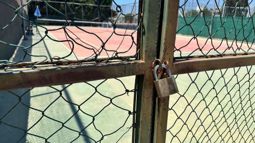 Sosyal tesislerin içindeki tenis kortlarının kapıları kilitli.