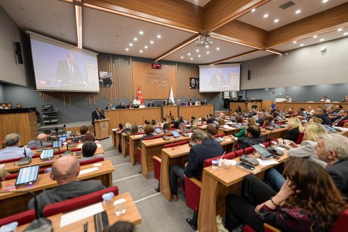 İzmir Büyükşehir Belediyesi’nin nisan ayı olağan meclis toplantısının üçüncü birleşimi Kültürpark Fuar Alanı 4 No’lu Hol’deki meclis toplantı salonunda yapıldı. İzmir Büyükşehir Belediye Başkanı Dr. Cemil Tugay’ın başkanlığındaki oturumda gündemdeki maddeler oylandı ve Büyükşehir Belediyesi ile ESHOT Genel Müdürlüğü’nün 2024 yılı faaliyet raporları görüşüldü. 7 saatlik toplantıda her iki kurum raporu da oy çokluğuyla kabul edildi.