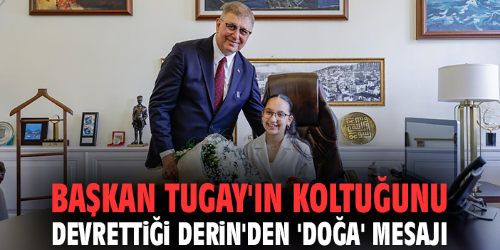 İzmir Büyükşehir Belediye Başkanı Dr. Cemil Tugay, Ulu Önder Gazi Mustafa Kemal Atatürk'ün dünya çocuklarına armağan ettiği 23 Nisan Ulusal Egemenlik ve Çocuk Bayramı'nda koltuğunu İzmir Çocuk Meclisi sözcüsü, Atakent Erdoğan Kibarer Ortaokulu 6. sınıf öğrencisi 12 yaşındaki Derin Taş'a devretti. Makamında eşi Öznur Tugay ile Derin Taş ve ailesini ağırlayan Başkan Tugay, “Bugün sana koltuğumuzu teslim edeceğim. Yüreğindeki dilekler gerçekleşsin. Senin gibi güzel çocuklarımız böyle güzel görevlerde olacaklar. Senin burada olman onlara da ilham versin” dedi.
