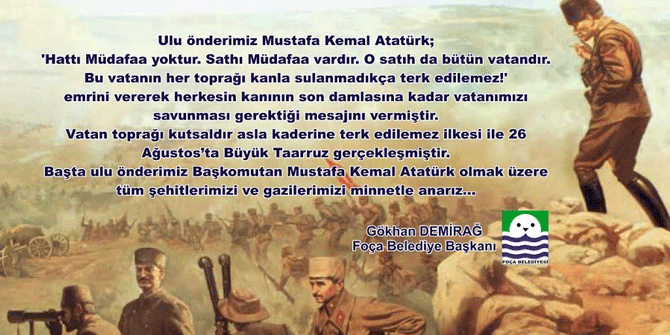 Foça Belediyesi Başkanı Gökhan Demirağ, 26 Ağustos mesajı yayınladı.