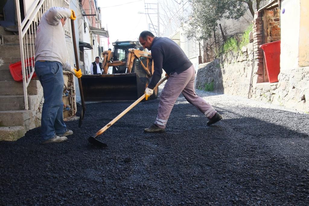 Bayraklı Belediyesi Fen İşleri Müdürlüğü asfalt ekipleri, kış aylarında yıpranan yollarda bakım, onarım, asfaltlama ve yama çalışması yürütüyor.