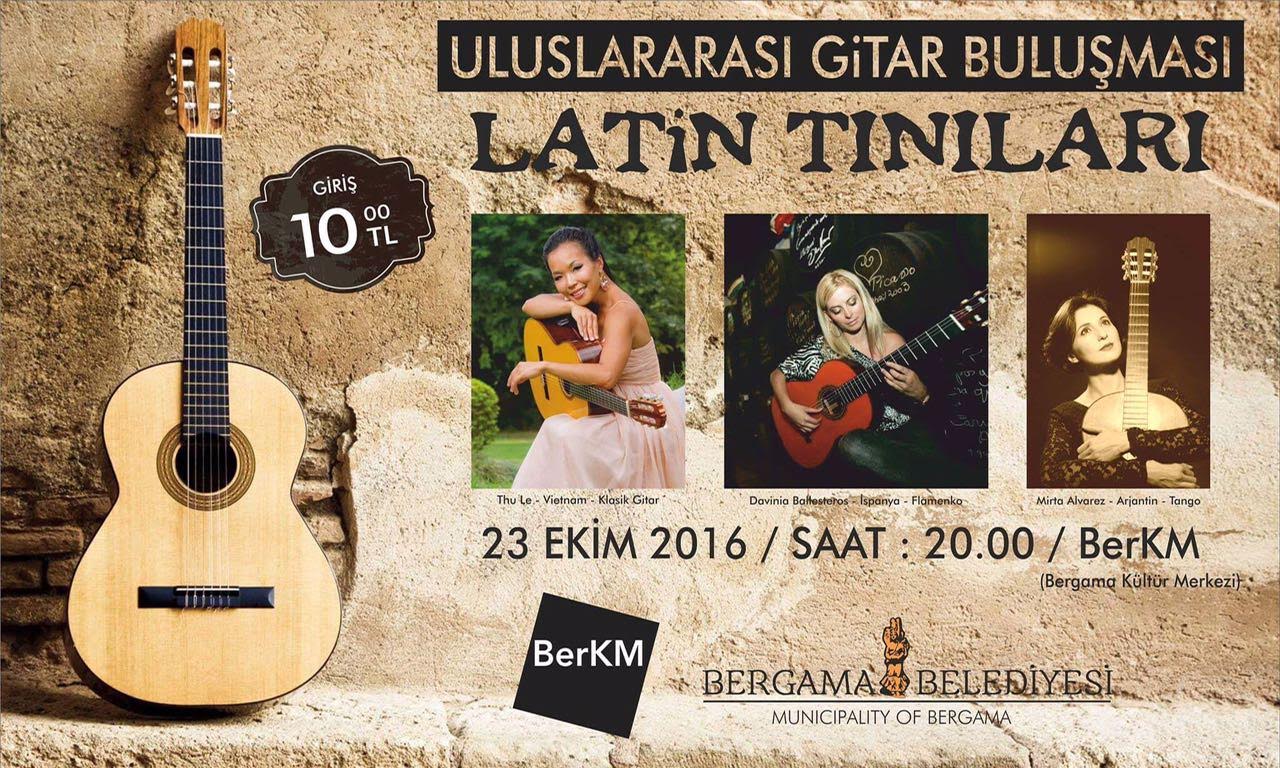 Vietnamlı dünyaca ünlü gitarist Thu Le (Klasik), İspanyol gitarist Davinia Ballesteros (Flamenko), Arjantinli gitarist Mirta Alvarez (Tango) BerKM'de sanatseverlerle bir araya gelecek. 23 Ekim Pazar Günü saat 20.00'de başlayacak konserin biletleri 10 TL'den satılacak.