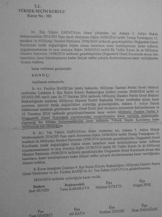 MHP Genel Merkezi tarafından 19 Haziran'daki kongrenin tanınmayacağı ve kongrenin 10 Temmuz'da yapılacağı duyurusundan sonra kongrenin yapılmamasına gerekçe muhalifler gösterilmişti...