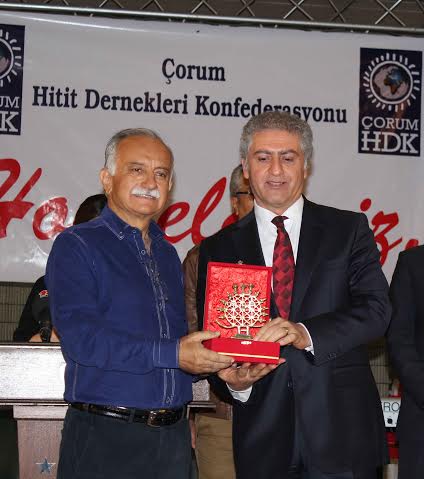 Konuşmaların ardından Çorum Hitit Dernekleri Konfederasyonu Genel Başkanı Av. Cemal Emir, katkılarından dolayı Başkan Karabağ’a plaket verdi.