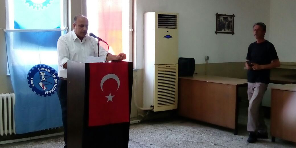 Liman İş Sendikası İzmir Şubesi de TCDD Alsancak Liman İşletmesi Yemekhanesi'nde yaptığı basın toplantısıyla 15 Temmuz akşamı gerçekleştirilen darbe kalkışmasına tepki gösterdi. Liman İş Sendikası İzmir Şubesi Başkanı Serdar Akdoğan yaptığı açıklamada sendikalarının yaptığı değerlendirmeler neticesindeki sonuç bildirgesini kürsüden okudu. Akdoğan kürsüden şu ifadelere yer verdi: