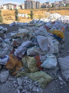 Belediyenin burnunun dibinde çuval çuval moloz yığını günlerdir temizlenmeyi bekliyor.