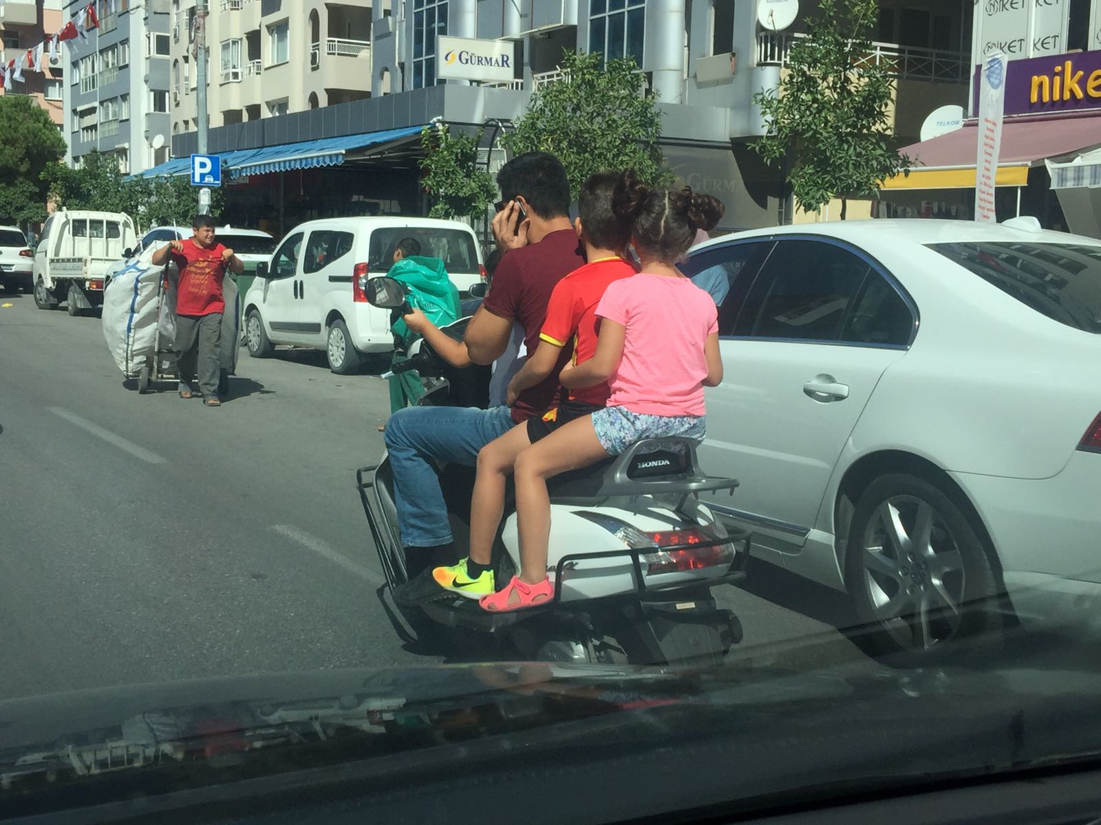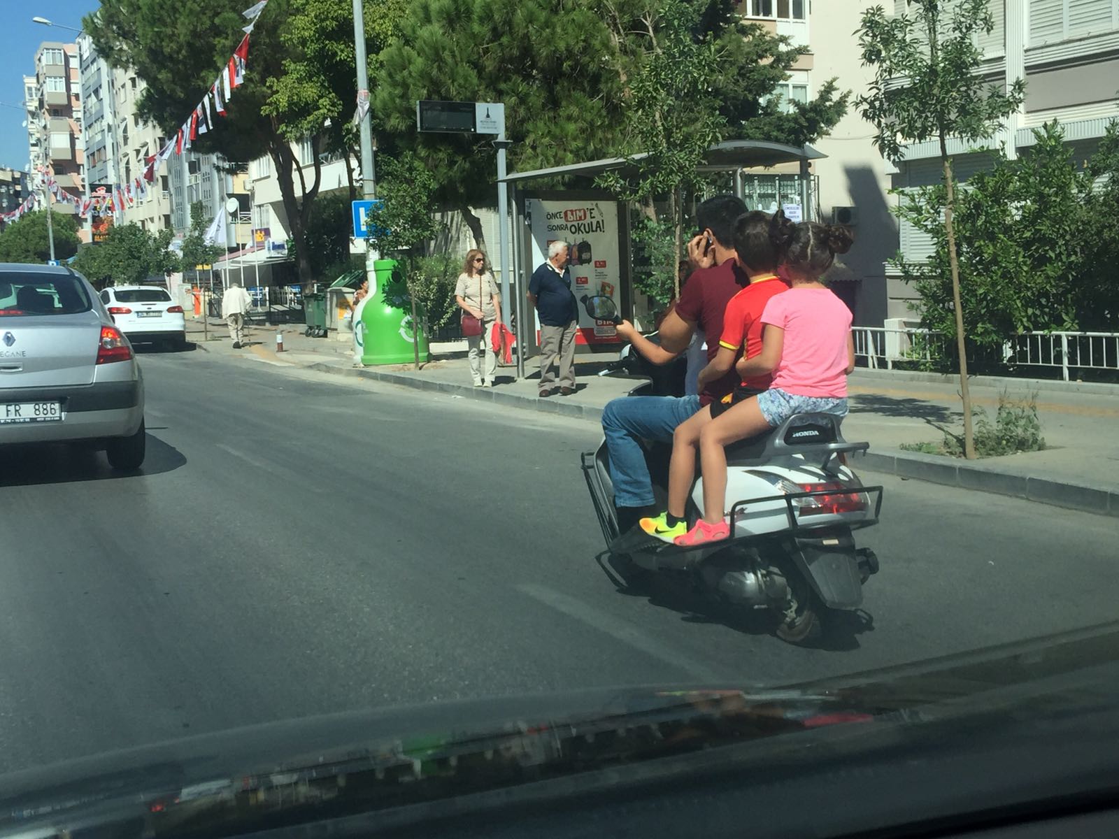Aynı sürücünün yine motorun üzerindeki üç çocukla birlikte bir saat sonra da Konak yönüne ilerlediği görüldü.