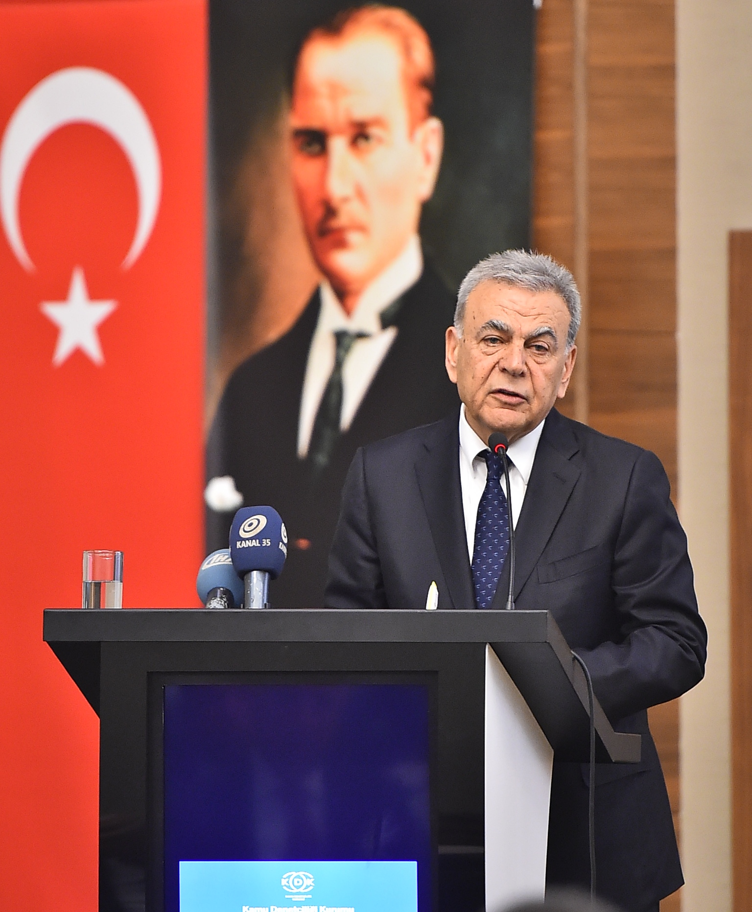 Toplantının açılışında konuşan İzmir Büyükşehir Belediye Başkanı Aziz Kocaoğlu, “Kamu Denetçileri Kurumu’nun bence en belirgin görevi, uzlaşma kültürünün ülkemizde gelişmesi, yaygınlaşması, uzlaşmanın sorunların çözülmesinde önemli bir araç olarak kullanılmasıdır. Bunu yapabildiğimiz, bunu yerleştirebildiğimiz sürece sorunlarımızı daha kolay, daha barışçıl, ortamı germeden, en az yara alarak ve en az zarar görerek çözmenin yolunu bulacağız” diye konuştu.