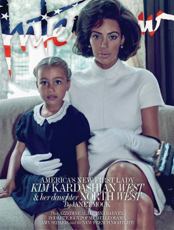 Çekim için ten rengi koyulaştırılan Kardashian, siyahi eşi Kanye West'ten olan kızı North ile aynı tene sahip oldu. Ancak Kardashian'ın bu görüntüsü sosyal medyada büyük tepki çekti.