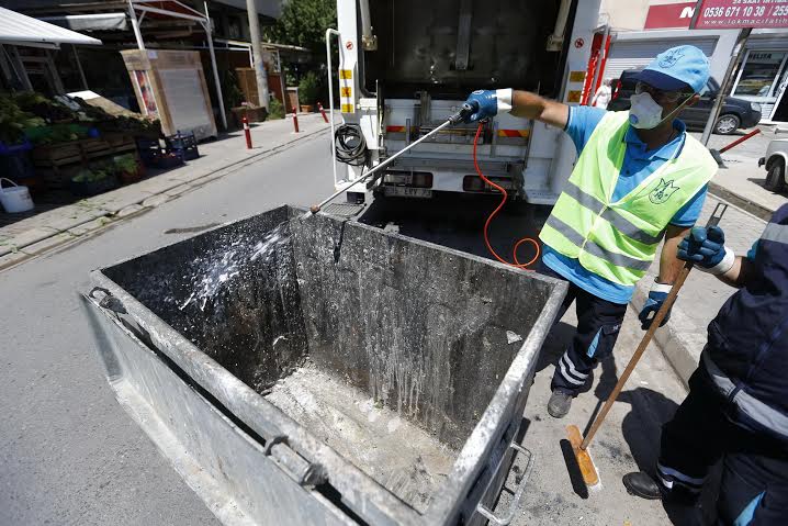 Havaların ısınmasıyla birlikte çöp konteynerlerinin temizliğine hız verildi.