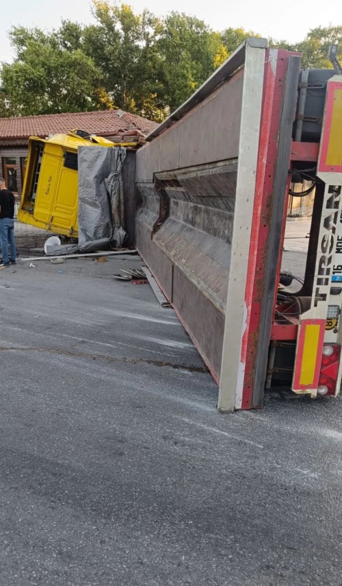 Kontrolden çıkan tır devrildi: 1 kişi yaralandı