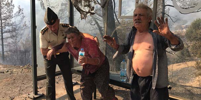 Yerleşim yerlerinde bulunan kişilerin tahliyesi için İl Jandarma Komutan Yardımcısı Jandarma Albay Numan Öksüz komutasında 77 personel olay mahalline geldi. Öksüz, bölgede evlerini terk etmek istemeyen İsmail ve Arzu Çınar çiftini güçlükle ikna ederek, yaşlı çifti ve kedilerini makam aracına alıp sağlık ekiplerinin bulunduğu alana ulaştırdı. Sağlık ekipleri, dumandan etkilenen çifte ambulansta müdahale etti. Öte yandan, bölgeye yakın illerden de çok sayıda takviye ekip istenildiği bildirildi.