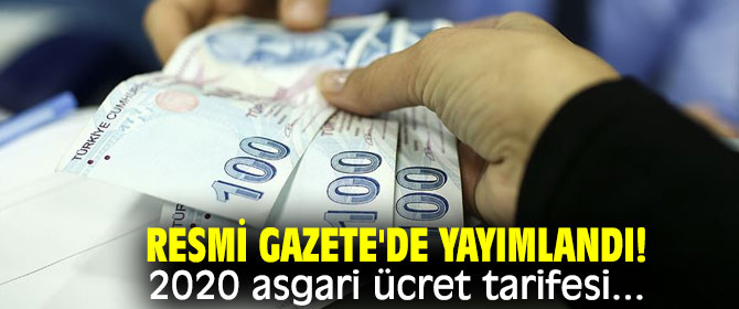 Resmi Gazete'de yayımlandı! 2020 asgari ücret tarifesi...