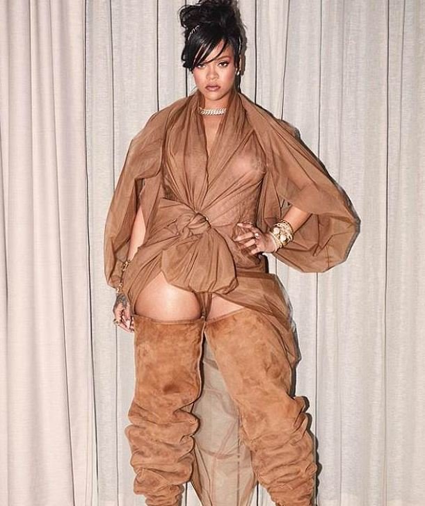Kahverengi tonlarında transparan bir kıyafet tercih eden Rihanna, altına aynı tonlarda yüksek topuklu ve uzun çizmeler giydi. Barbadoslu şarkıcının bu elbisesi, takipçileri tarafından çarşafa benzetildi. Riri, festival kapsamında sahne alan Beyonce'nin konserini izledi.