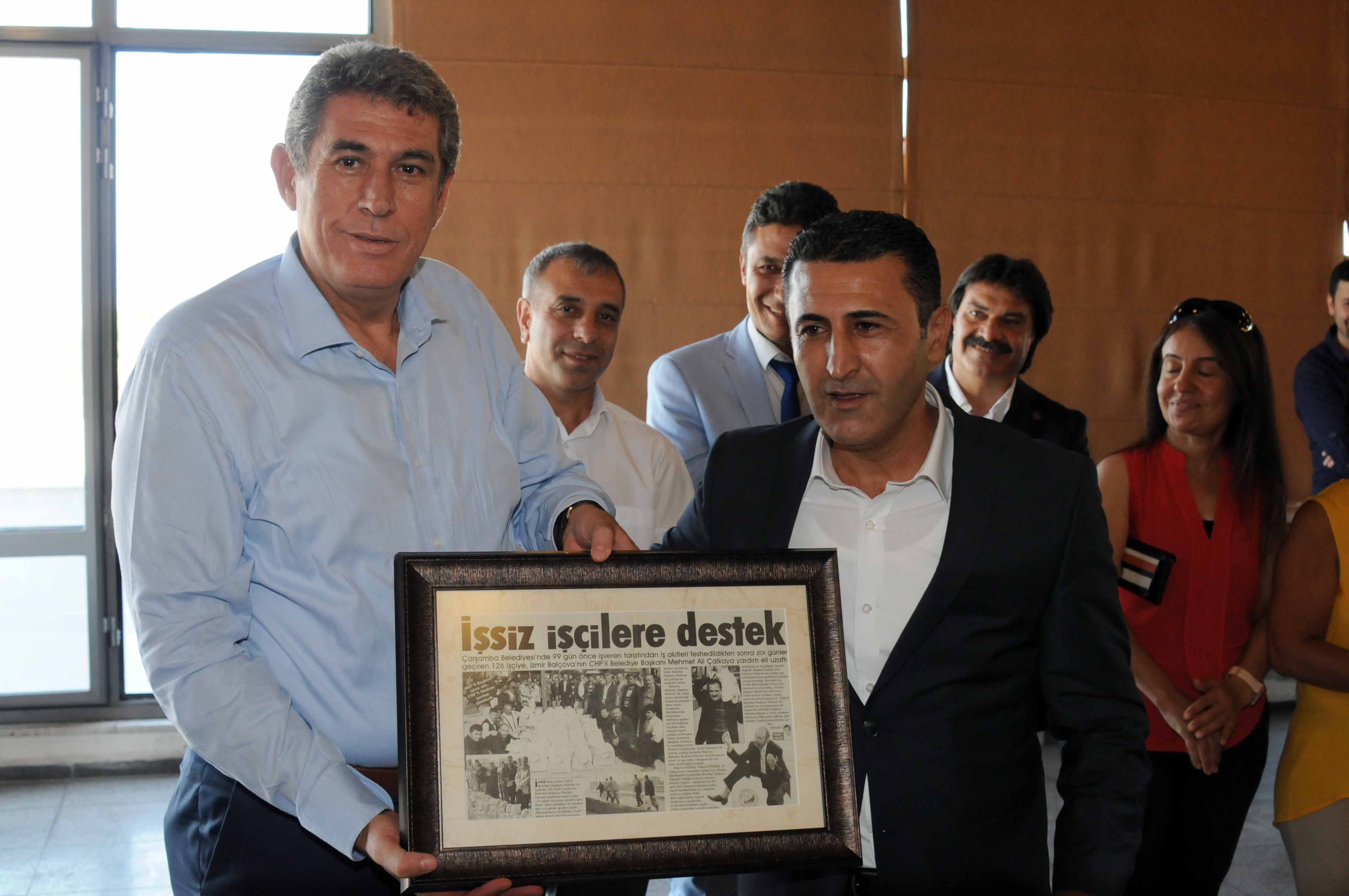 Belediye-İş 4 No’lu Şube Başkanı Ayhan Doğan ise 8 yıl önce işten atılan Samsun Çarşamba Belediyesi işçilerine destek olan Başkan Mehmet Ali Çalkaya ile ilgili bir gazete haberini göstererek “Bu olayı Çarşamba Belediyesi’nde işten atılan bir arkadaşımdan tesadüfen öğrendim. Kendisi ağlayarak Başkan Çalkaya’nın bu jesti karşısında ne kadar etkilendiğini anlattı. Biz de hem duygulandık hem de Belediye Başkanımız ile gurur duyduk. Türkiye’nin bir ucundaki belediye işçilerine tek başına sahip çıkan başkanın kendi personeline de sahip çıktığına şahidiz” dedi.