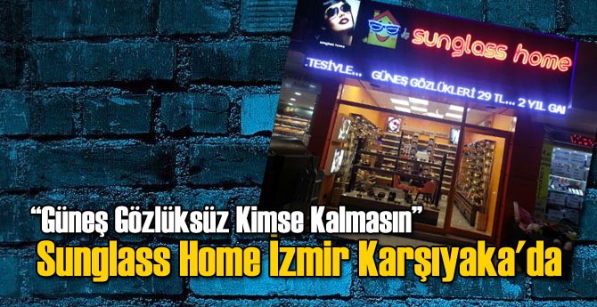 Sunglass home güneş gözlüğü satış noktalarının ilki İzmir Karşıyaka da ‘’’’’GÜNEŞ GÖZLÜKSÜZ KİMSE KALMASIN’’’ sloganıyla hizmete girdi.Market anlayışı içinde hizmet verecek olan mağaza kısa surede çok begenı alacak gıbı gorunuyor…İç dekorasyonlarını ünlü bir Italyan tasarımcının uyguladığı, tüm materyallerin titizlikle seçildiği güneş gözlüğü magazası gözlemleyenler tarafından çok beğenı alıyor.