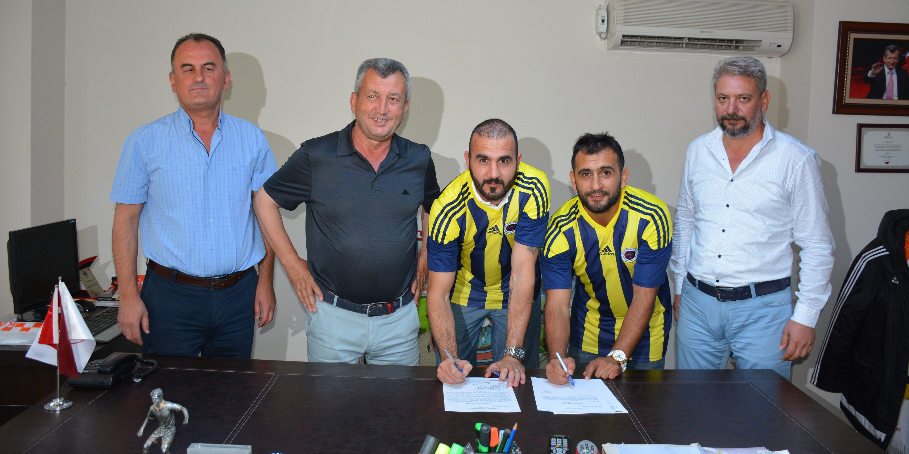 Menemen Belediyespor Kulübü Onursal Başkanı ve Menemen Belediye Başkanı Tahir Şahin’in yanı sıra, Belediye Başkan Yardımcıları ve Kulüp Yöneticileri Ufuk Anık ile Nadir Şenel’in de katıldığı imza töreninde; Karşıyaka’dan transfer olan Gökhan Ünal ve Antalyaspor’dan gelen Erman Kılıç iki yıllık sözleşme imzaladı.