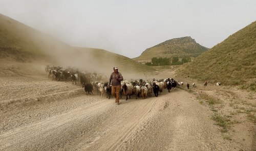 Bitlis'te koyun sürülerinin Nemrut Dağı’ndaki yaylalara zorlu ve tozlu yolculuğu başladı.