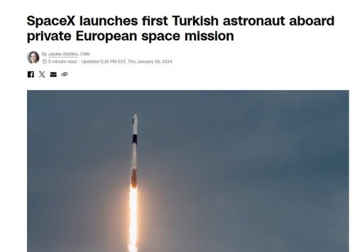 CNN International, “SpaceX, Avrupa özel uzay misyonuyla ilk Türk astronotu gönderdi” ifadelerine yer verdi.