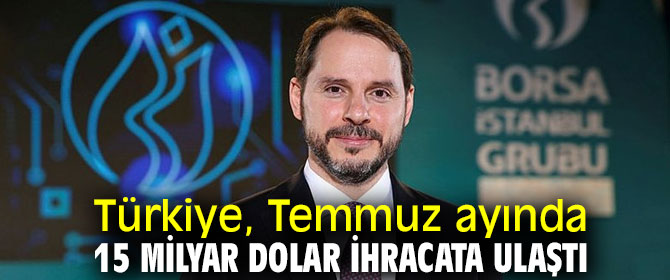 Hazine ve Maliye Bakanı Berat Albayrak, "Türkiye, Temmuz ayında 15 milyar dolar ihracata ulaştı. Bu, 2020'nin en yüksek seviyesi oldu" dedi.